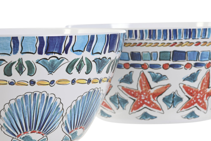 Ensaladera colección marítima, dibujos de conchas y estrellitas de mar. Material de melamina.
