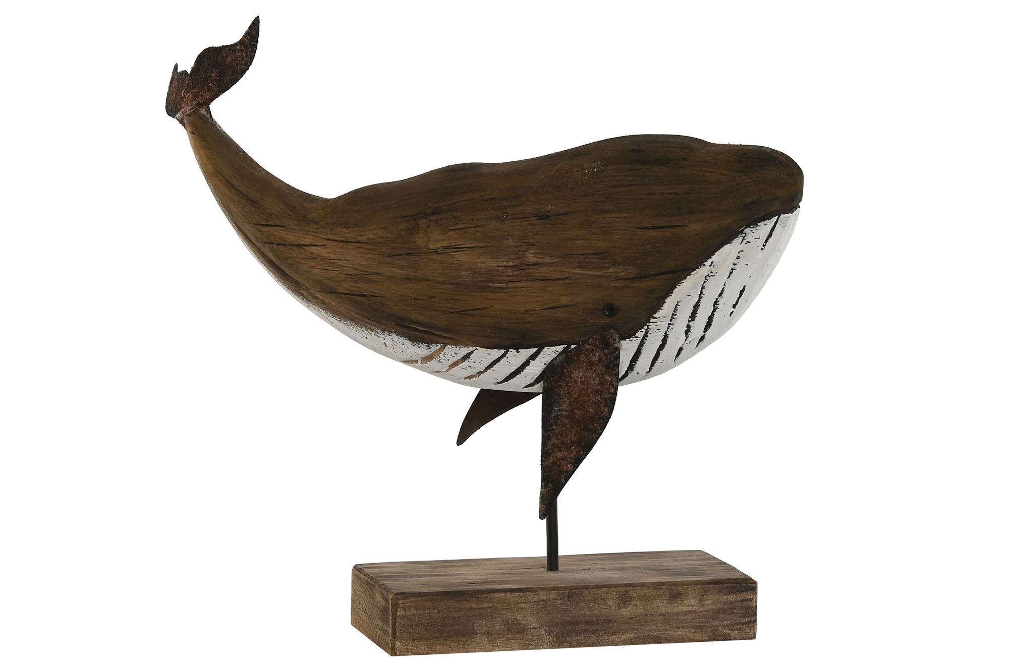Figura de cachalote en peana, material de paulownia, color marrón.