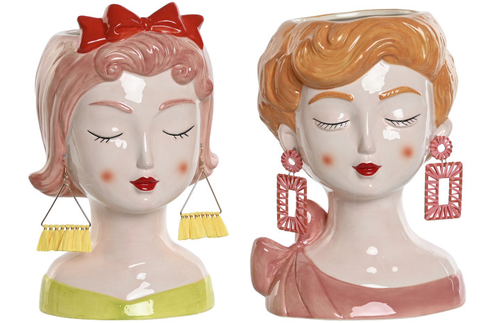 Macetero de busto de mujer con pendientes, material dolomite. Dos modelos diferentes.
